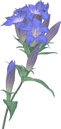 ‘용담(龍膽)’이라는 이름은 ‘용의 쓸개’라는 의미로, 실제 용담의 뿌리는 곰의 쓸개인 웅담 못지않게 쓴맛을 지니고 있다. 8~10월에 자주색 꽃이 피며, 줄기는 직립하다가 개화기에는 옆으로 눕는다. 주로 산지의 풀밭에서 자라며, 한국, 일본, 시베리아 동부, 중국 동북부에 분포한다. 국립백두대간수목원에는 고산습원과 약용식물원 등지에 식재되어 있다.