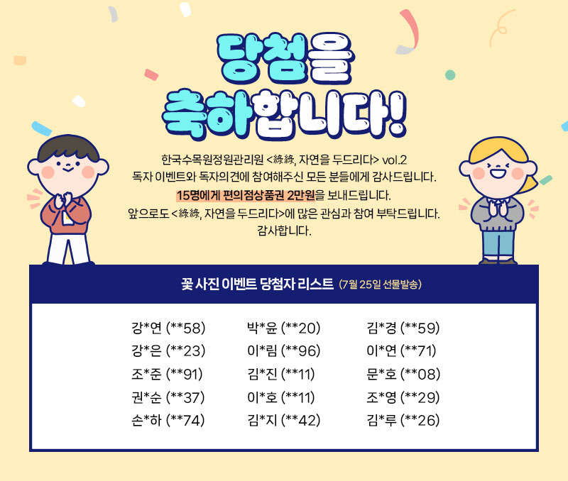 곳곳에 핀 색색의 꽃들이 우리의 마음을 설레게 합니다. 아름다운 꽃을 보았다면 사진으로 찍어서 보내주세요. 오른쪽 QR코드 스캔 후 독자설문 작성과 꽃 사진을 보내주신 분 중에서 15명을 선정해 2만 원 편의점상품권을 보내드립니다.
