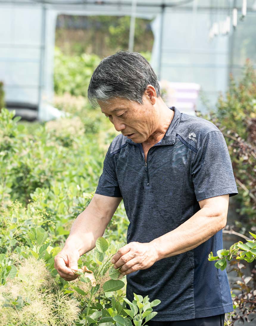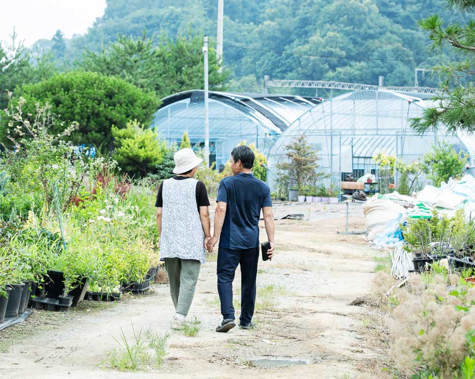 처음 이 일을 시작하게 된 건 한 20년 전쯤, 아내가 소나무를 좋아하게 되면서였어요. 아내가 묘목을 하나둘 키우다 보니 점점 규모가 커졌고, 저도 직장을 정리하고 본격적으로 함께 하게 됐습니다. 처음엔 조경수 위주였지만, 요즘은 초화류 쪽으로도 방향을 넓히고 있는 중입니다. 농장 이름은 원래 ‘창성농원’이었는데 같은 이름을 쓰는 업체가 있어서 고민 끝에 이름을 ‘정가농원’으로 바꿨죠. ‘따뜻할 정(情), 아름다울 가(佳)’ — 뜻 그대로, 따뜻하고 아름다운 나무를 키우는 농장이라는 뜻입니다.
